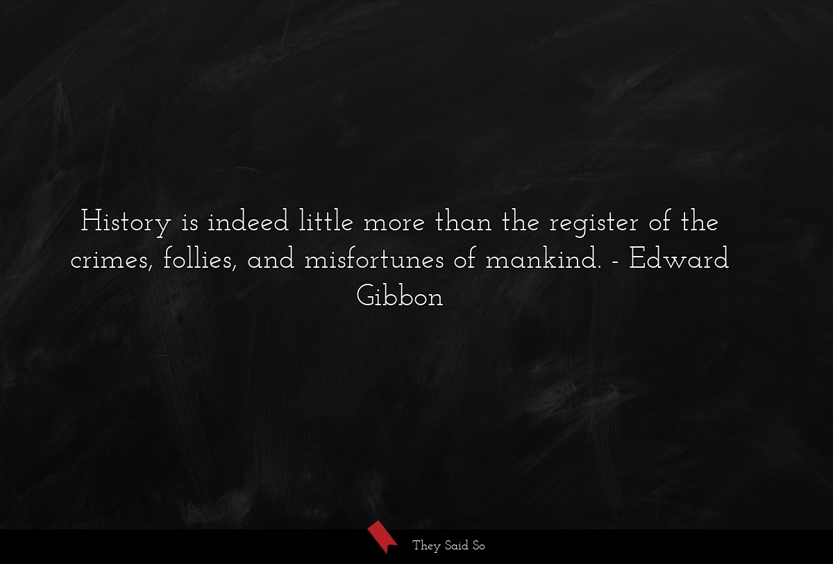 The best of edward gibbon quotes, as voted by quotefancy readers. Most of this article, including quotations unless otherwise noted, . Is indeed little more than the register of the crimes, follies, and misfortunes of mankind. After a visit to rome (1764) he embarked on a history of the roman empire. Every man who rises above the common level has received two educations: